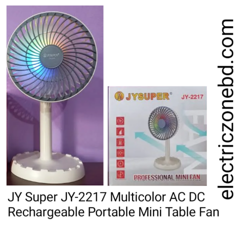JY Super JY-2217 Multicolor AC DC Rechargeable Portable Mini Table Fan